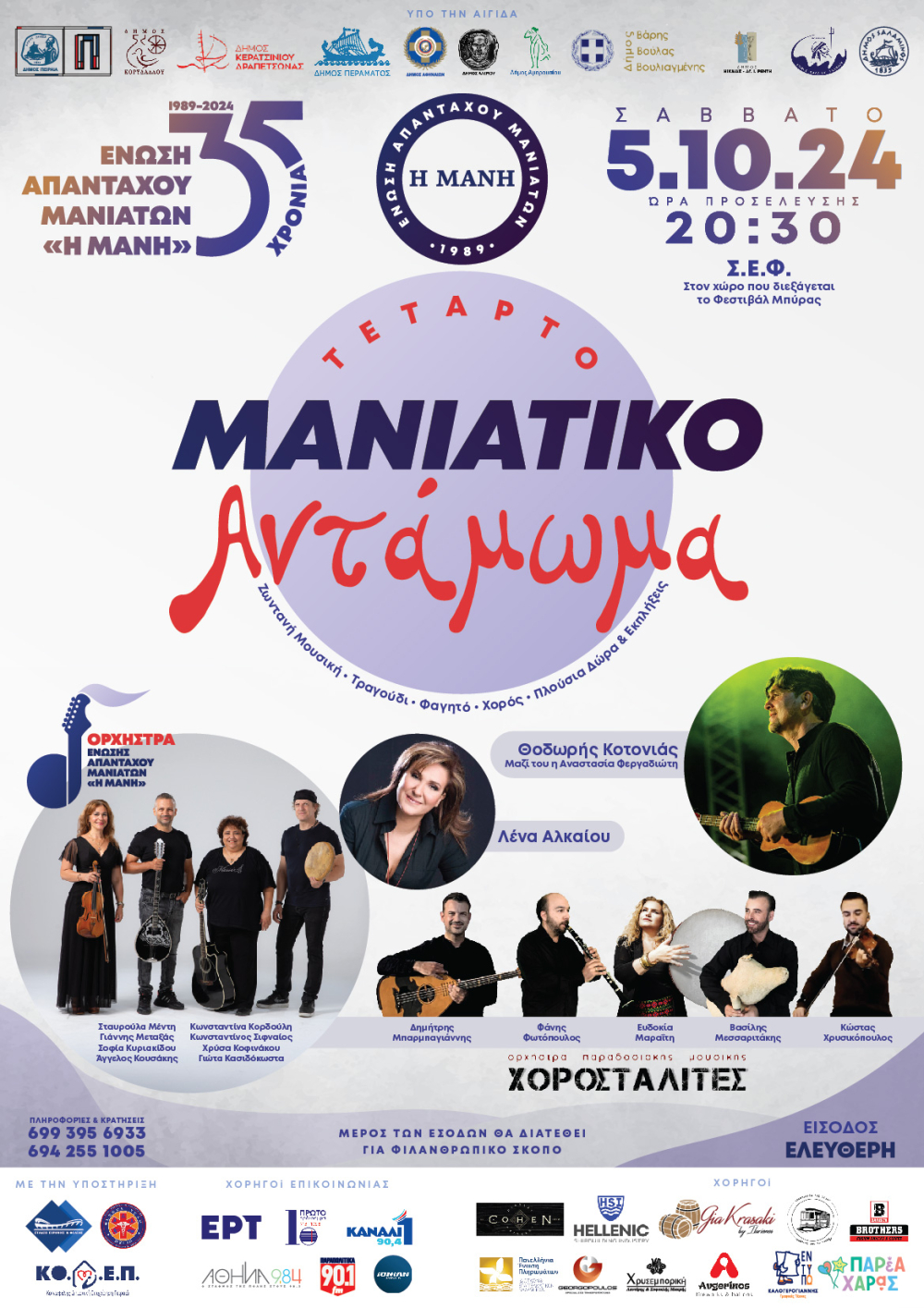 Η Ένωση Απανταχού Μανιατών «Η Μάνη» γιορτάζει τα 35 χρόνια από την ίδρυσή της και σας προσκαλεί στο 4o Μανιάτικο Αντάμωμα το Σάββατο 5 Οκτωβρίου 2023 και ώρα 20:30 στο Στάδιο Ειρήνης και Φιλίας.