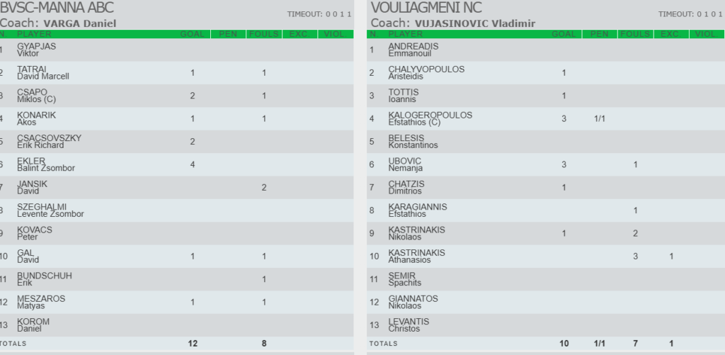 Στο πλαίσιο της 3ης αγωνιστικής του Euro Cup ανδρών, ο ΝΟ Βουλιαγμένης ηττήθηκε με 12-10 από την BVSC στην Βουδαπέστη.