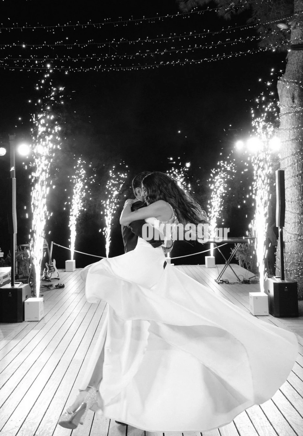 Κατά τη διάρκεια της δεξίωσης ο γαμπρός μάγεψε τον κόσμο με τις χορευτικές του δυνατότητες, ενώ η νύφη τραγούδησε για τον αγαπημένο της, συγκινώντας τους παρευρισκόμενους.