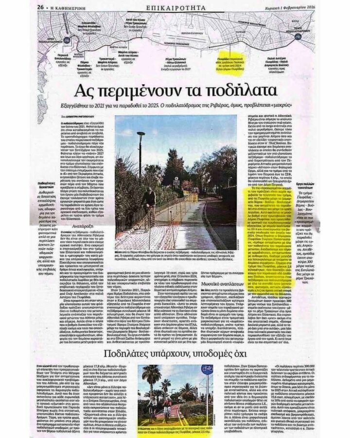 Όπως τονίζει ο δήμαρχος, στόχος της δημοτικής αρχής είναι η ενίσχυση της βιώσιμης αστικής κινητικότητας, η μείωση της χρήσης του αυτοκινήτου και η ουσιαστική αναβάθμιση της ποιότητας ζωής των κατοίκων.