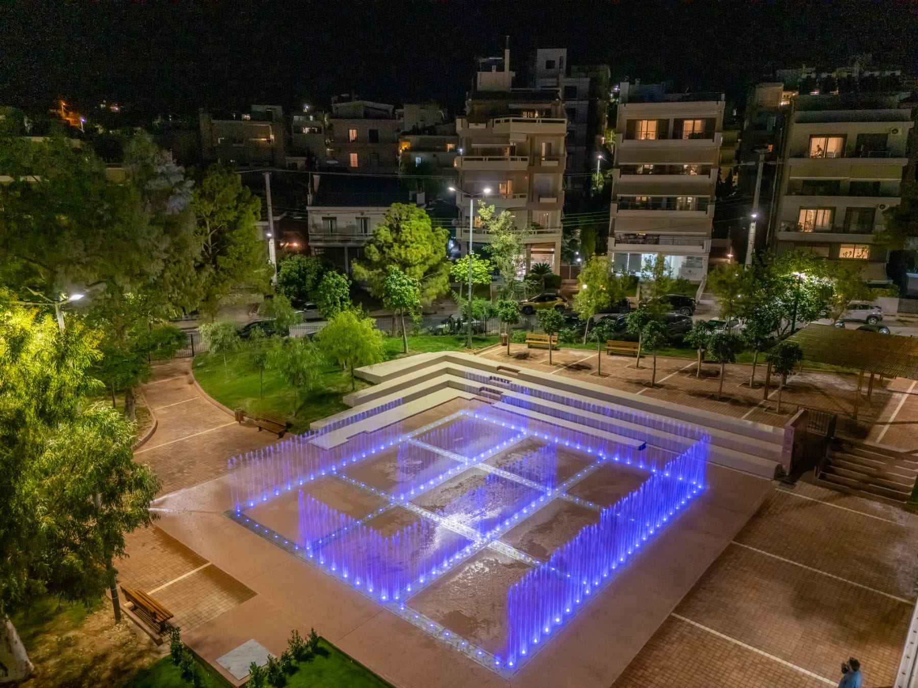 Η πλατεία Καραϊσκάκη στην Τερψιθέα απέκτησε ένα νέο σημείο αναφοράς: το πρώτο διαδραστικό σιντριβάνι της Γλυφάδας, όπου μικροί και μεγάλοι μπορούν να χωθούν ανάμεσα στους πίδακες νερού, να δροσιστούν και να απολαύσουν μια εμπειρία που θυμίζει καλοκαίρι – ακόμη και μέσα στην καρδιά του φθινοπώρου.