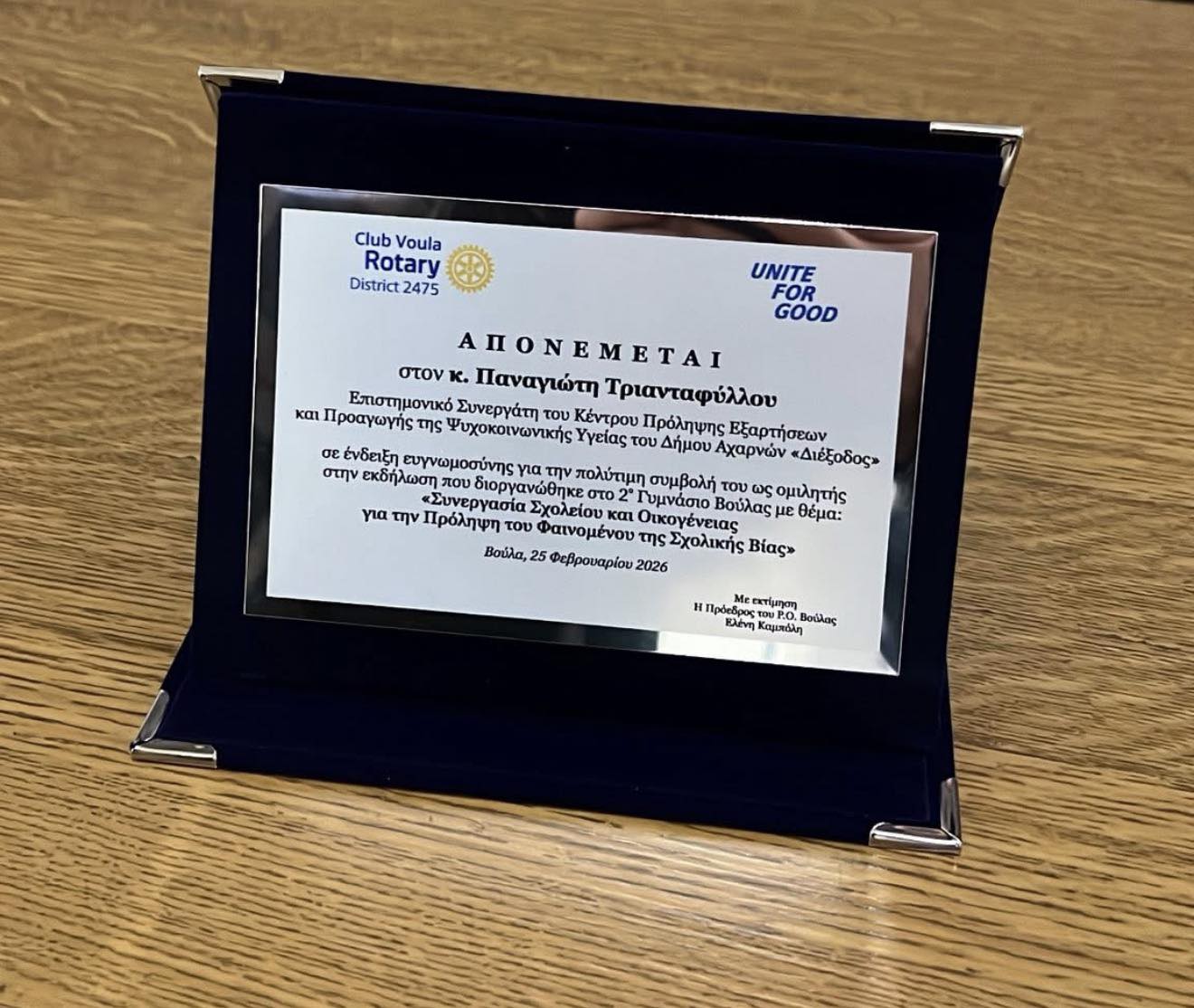 Ενημερωτική εκδήλωση με θέμα τη «Συνεργασία σχολείου–οικογένειας για την αντιμετώπιση του φαινομένου της σχολικής βίας» πραγματοποιήθηκε στη Βούλα στις 25 Φεβρουαρίου, κατόπιν συνεργασίας του Ροταριανού Ομίλου Βούλας με το 2ο Γυμνάσιο Βούλας. Η δράση εντάχθηκε στο πλαίσιο των πρωτοβουλιών του Ομίλου και των συμπράξεων με φορείς του Δήμου, με σκοπό την ενημέρωση της εκπαιδευτικής κοινότητας και των πολιτών για ζητήματα που απασχολούν την ευρύτερη κοινωνία.