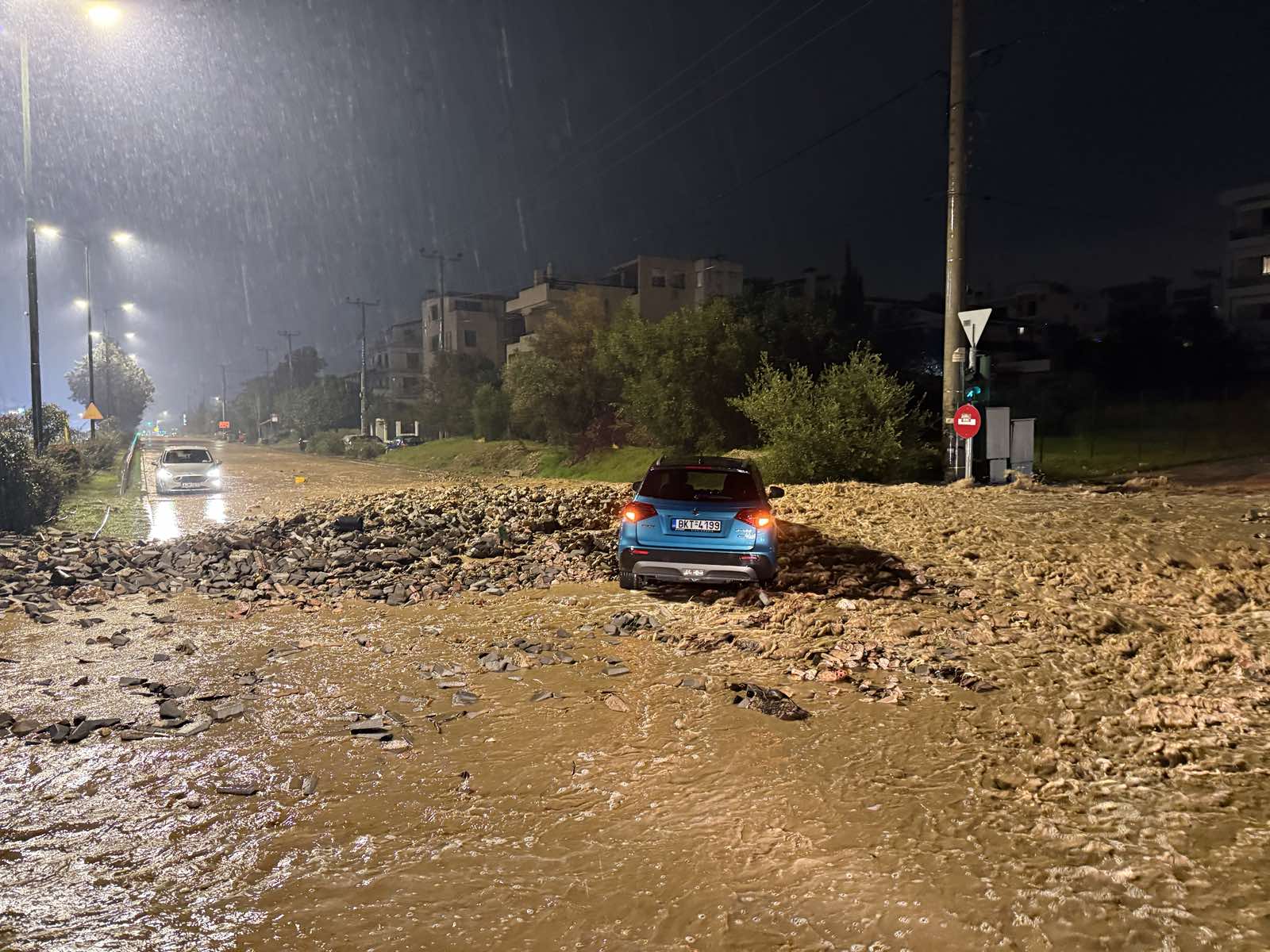 Στη Βούλα στην οδός Πειραιώς και Βουλιαγμένης έχει κατέβει όλο το βουνό στο οδόστρωμα, και δύο αυτοκίνητα είναι εγκλωβισμένα. Στο σημείο βρίσκεται η Πυροσβεστική και η Αστυνομία.