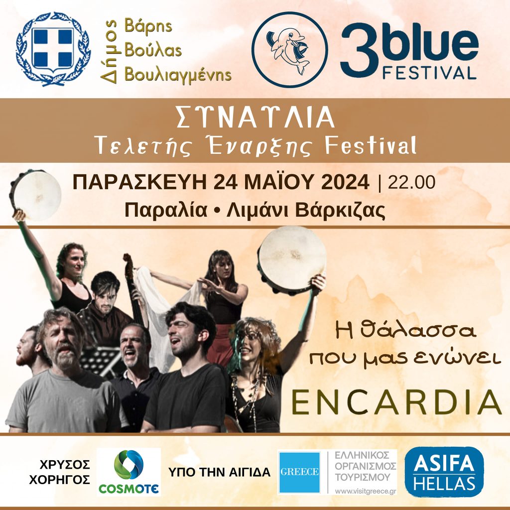 Το ξεχωριστό συγκρότημα ENCARDIA θα ντύσει με τους ήχους και τις ιδιαίτερες μελωδίες του την επίσημη τελετή έναρξης του 3Blue Festival στο Λιμάνι της Βάρκιζας, με την μουσική παράσταση “Η θάλασσα που μας ενώνει”.