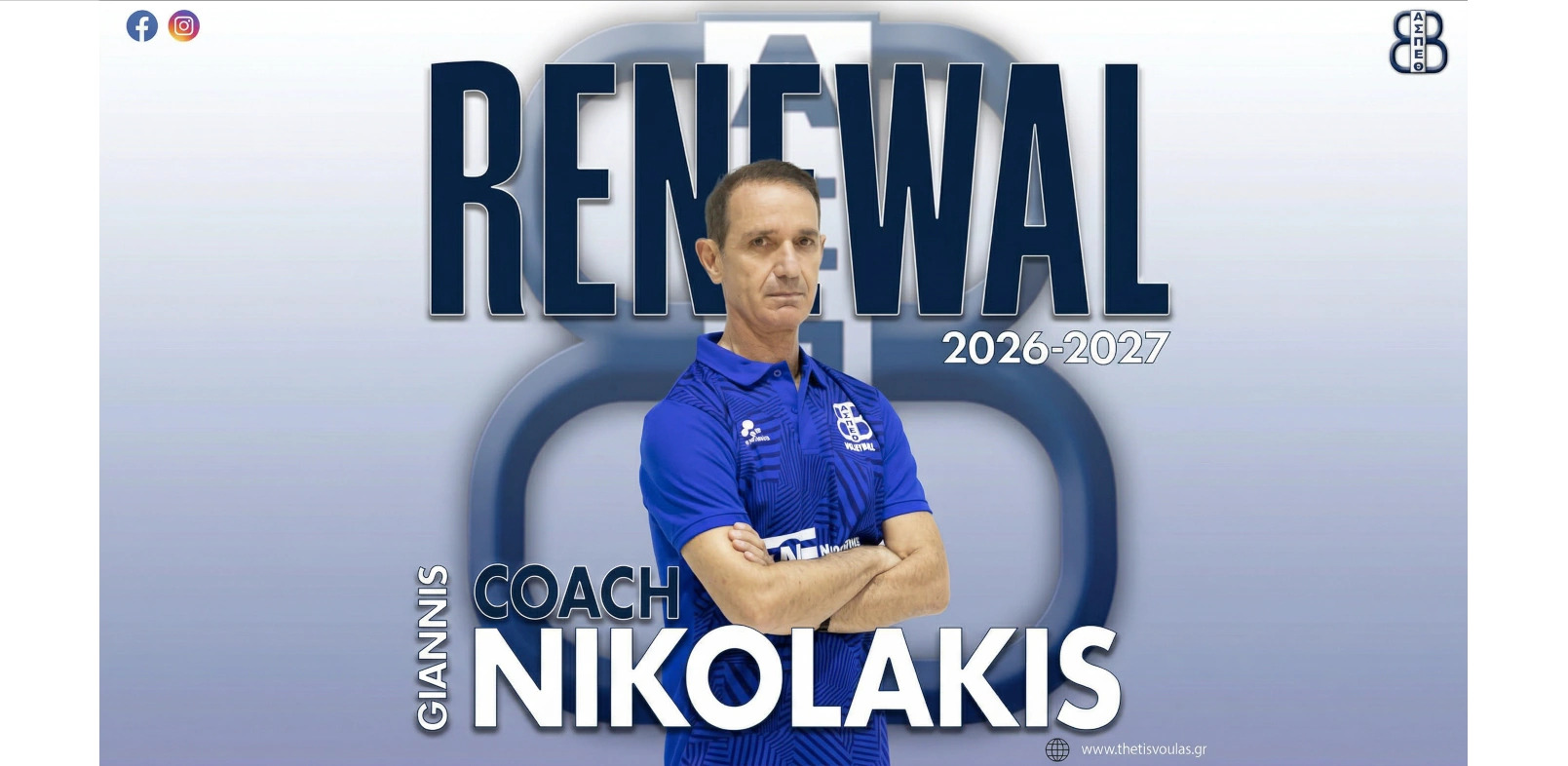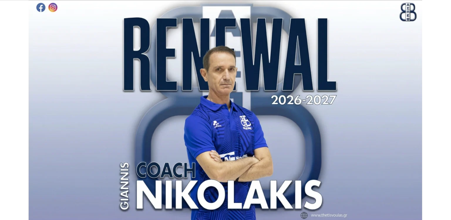 Ο ΑΣΠ Θέτις Βούλας ανακοινώνει την ανανέωση της συνεργασίας με τον προπονητή Γιάννη Νικολάκη για την αγωνιστική περίοδο 2026-27.