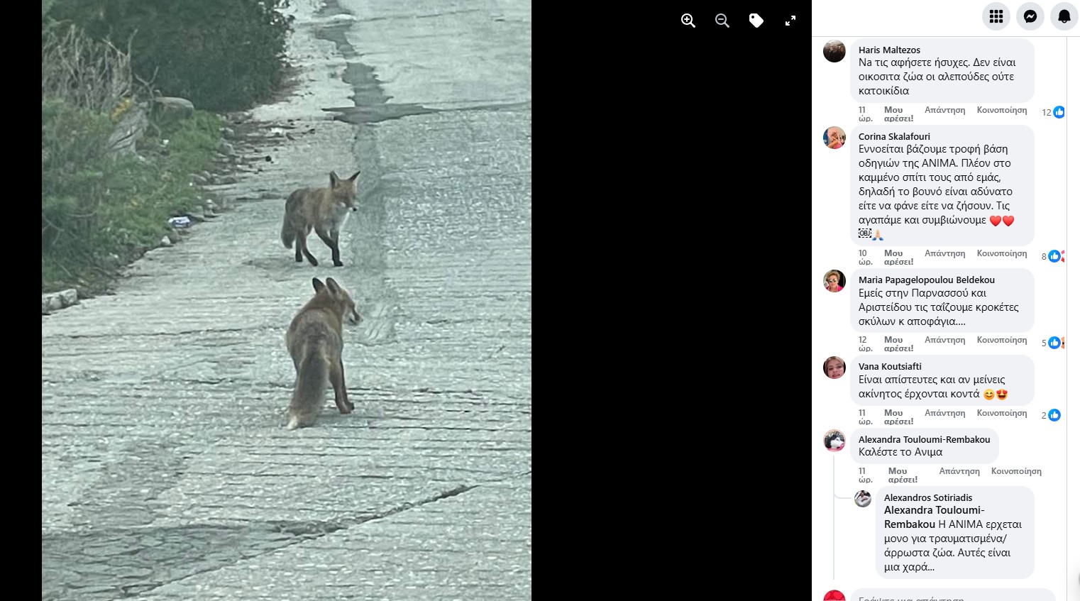 «Εννοείται βάζουμε τροφή, βάση οδηγιών της ΑΝΙΜΑ. Πλέον το καμένο σπίτι τους από εμάς, δηλαδή το βουνό, είναι αδύνατο είτε να φάνε είτε να ζήσουν», έγραψε μία σχολιάστρια, ενώ άλλοι ανέφεραν ότι τους αφήνουν κροκέτες σκύλου ή αποφάγια σε διάφορα σημεία της Βούλας. Από την άλλη πλευρά, υπήρξαν και φωνές που προειδοποίησαν ότι η συνεχής σίτιση των αλεπούδων από ανθρώπους μπορεί να αλλάξει τη συμπεριφορά τους, κάνοντάς τις πιο εξαρτημένες από τους ανθρώπους και μειώνοντας τα ένστικτα επιβίωσής τους.