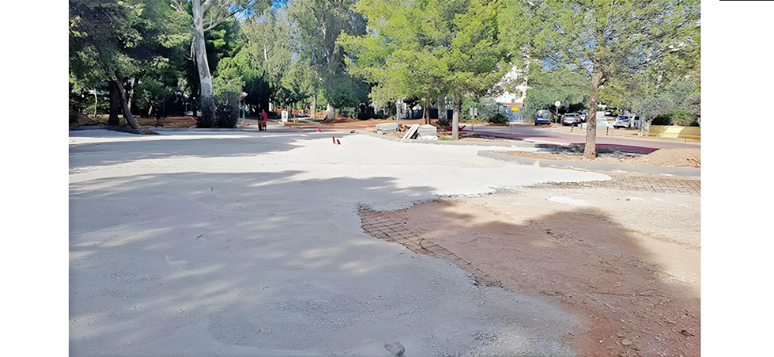 Όμως μέσα σ’ αυτόν τον χώρο υπάρχουν και πεύκα τα οποία είναι τραυματισμένα από τα οχήματα της αποψίλωσης με κομμένες ρίζες και άλλα εγκλωβισμένα μέσα στο τσιμέντο. Κάποια επίσης έχουν ένα κόκκινο Χ επάνω, ωσάν να είναι τα επόμενα θύματα…