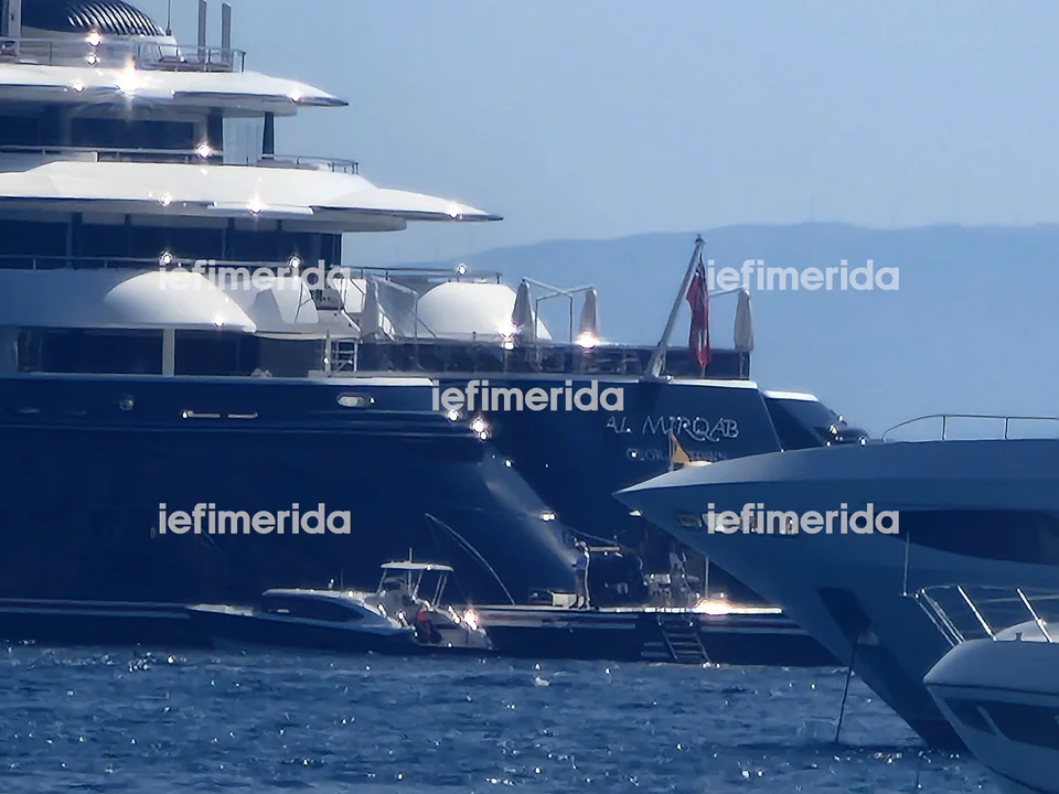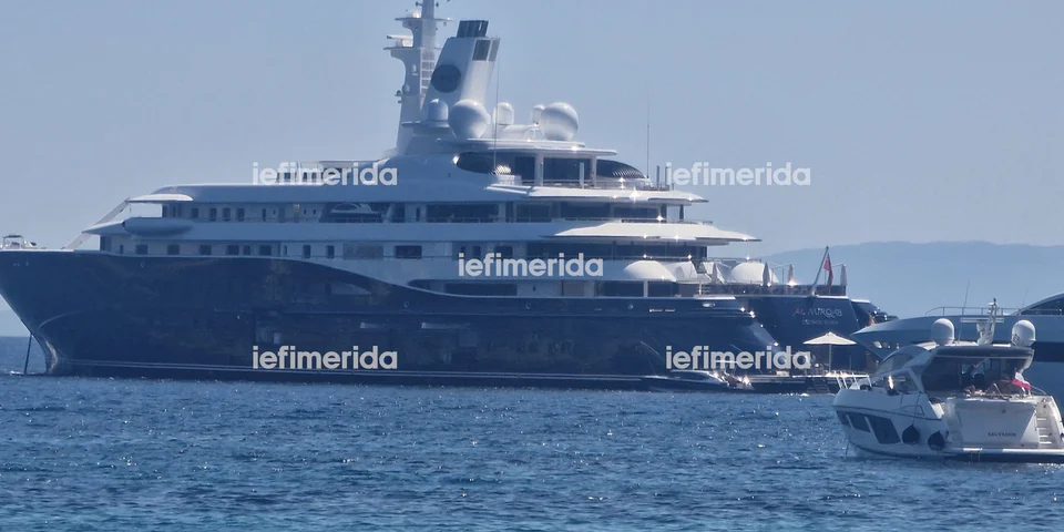 Όπως θα δείτε και στις εικόνες του iefimerida, η «AL Mirqab» βρίσκεται στα ανοιχτά του ξενοδοχειου Four Seasons.