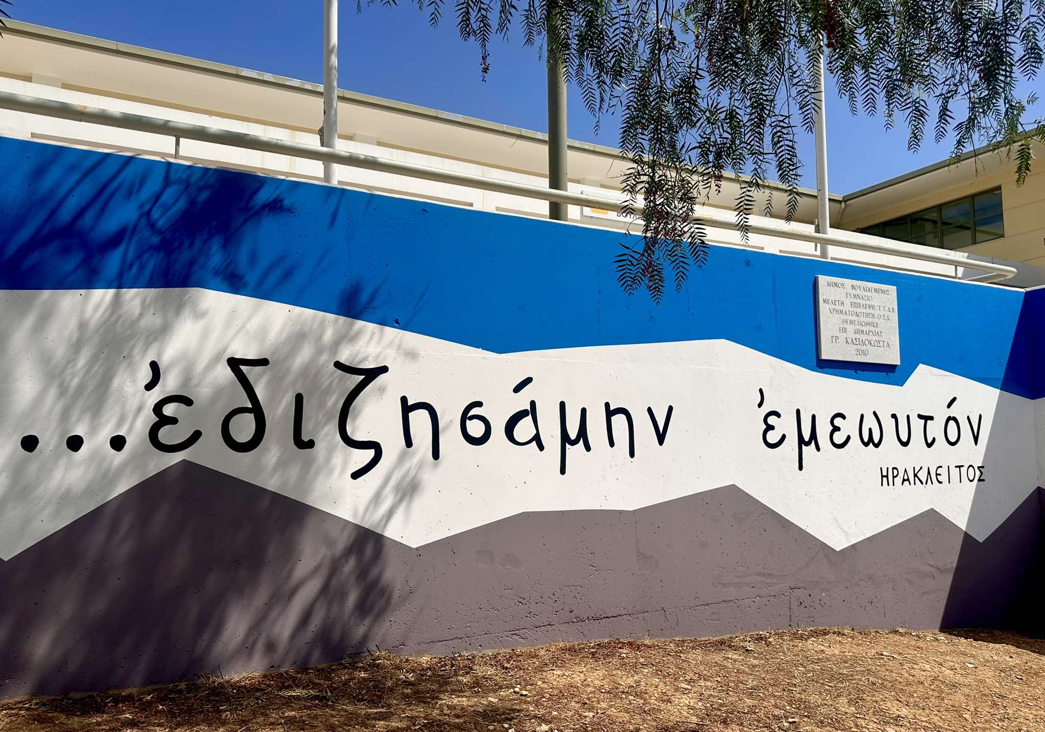 Στην αριστερή πλευρά του έργου, ενσωμάτωσε το φιλοσοφικό ρητό του αρχαίου Έλληνα στοχαστή Ηράκλειτου: “εδιζησάμην εμεωυτόν”. Αυτή η φράση, διατυπωμένη στην ιωνική διάλεκτο, σημαίνει “αναζήτησα τον εαυτό μου”. Η διεύθυνση του σχολείου τόνισε τη σημασία αυτού του ρητού, δηλώνοντας ότι στοχεύουν να αποτελέσει οδηγό για τις ζωές των μαθητών, ενθαρρύνοντας την προσωπική ανάπτυξη και αυτογνωσία.