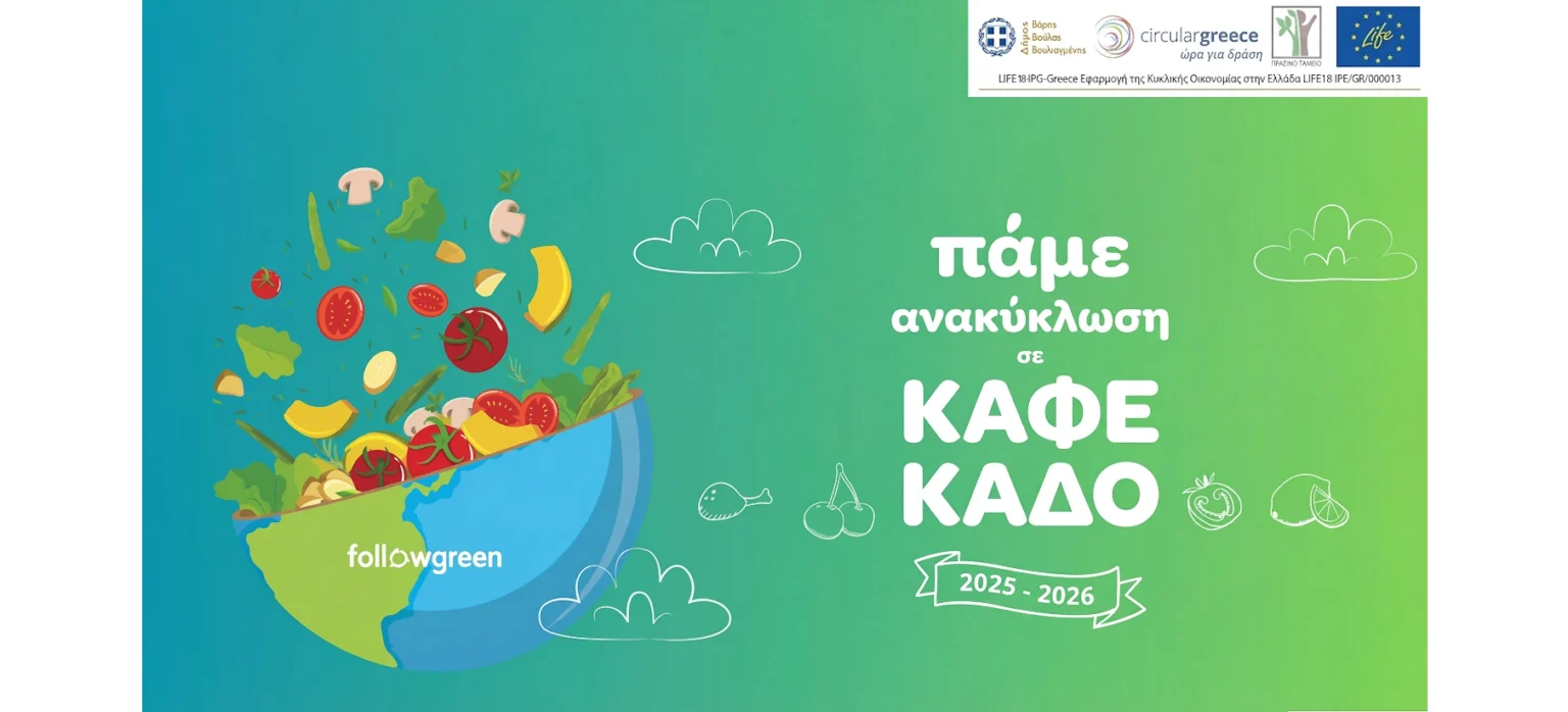 Ο Δήμος Βάρης Βούλας Βουλιαγμένης, στο πλαίσιο της δημοτικής πλατφόρμας επιβράβευσης της ανακύκλωσης Followgreen και της συμμετοχής του στο ευρωπαϊκό πρόγραμμα LIFE–IP CEI Greece – Circular Greece, υλοποιεί με επιτυχία τη σχολική δράση διαλογής βιοαποβλήτων σε καφέ κάδο για τη σχολική χρονιά 2025 – 2026.
